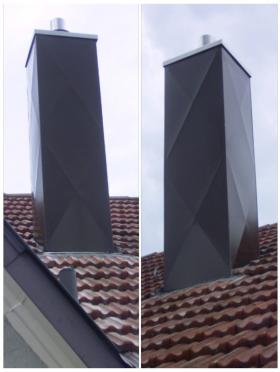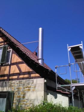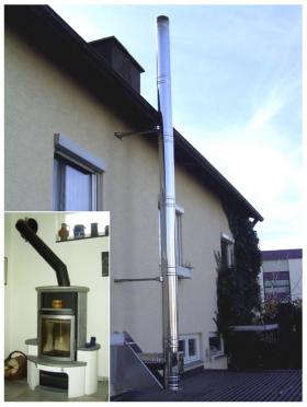 Links: doppelwandige Abgasleitung für Ölheizung # Rechts: doppelwandiger Edelstahlschornstein für Heizeinsatz